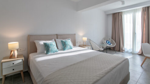 The house is located in a quiet area of the island, with several attractions and amenities close by. There’s a grocery store with a wide selection of food & drinks only 10 minutes from the house. There’s also a local restaurant with traditional greek cuisine just a few minutes away.